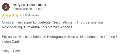 Herzlich willkommen, ich bin Christian und betreibe seit 2017 den Hochzeitsverleih in Aachen. Als ehemaliger Hochzeits-DJ mit über 13 Jahren Erfahrung weiß ich, wie wichtig die richtigen Details für besondere Momente sind – denn oft sind es die kleinen Dinge, die lange in Erinnerung bleiben.