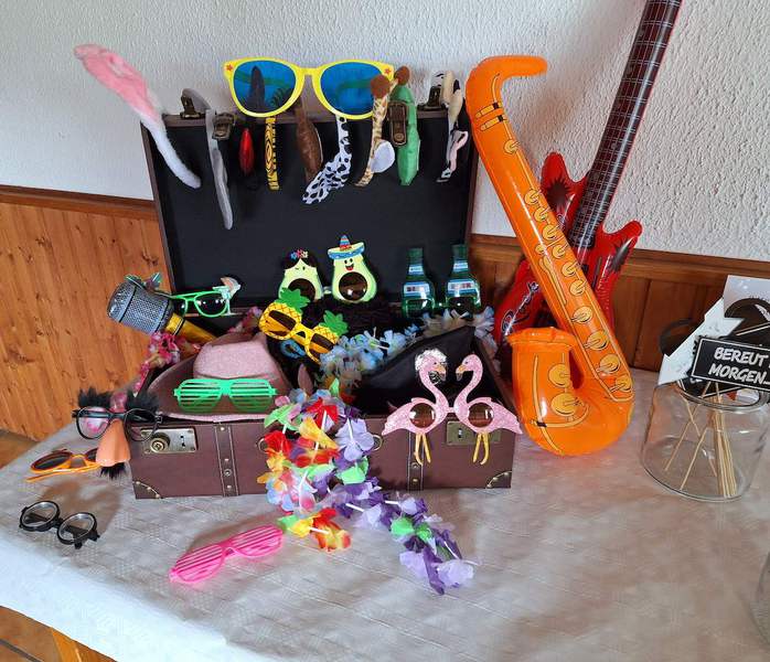 Koffer mit großer Auswahl an Props und Accessoires – perfekt für witzige Fotos