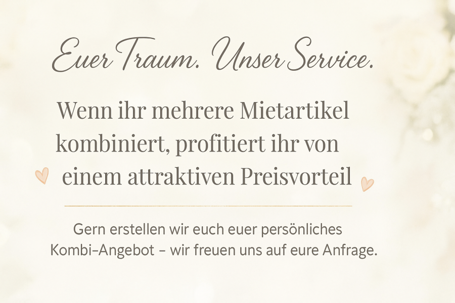 Haben Sie Fragen zu unseren Mietartikeln oder möchten Sie sich über freie Buchungstermine informieren? Dann melden Sie sich gerne bei uns – per E-Mail, telefonisch, per WhatsApp oder über unser Kontaktformular. Wir freuen uns sehr auf Ihre Nachricht und helfen Ihnen gerne weiter!